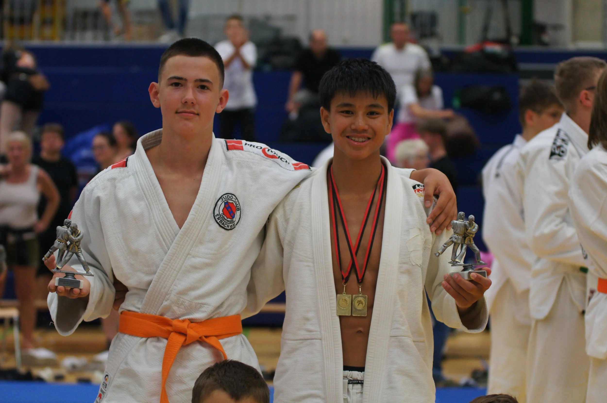 Ein weiterer erster Platz ging in der U14 bis 40 kg an Fabian Buffleb. In der stark besetzten Gewichtsklasse U14 bis 56 kg gingen Julian Wilczek und Kjeld Schwarz auf die Matte. Julian setzte sich gegen alle durch und wurde Erster, Kjeld erreichte einen guten dritten Platz.